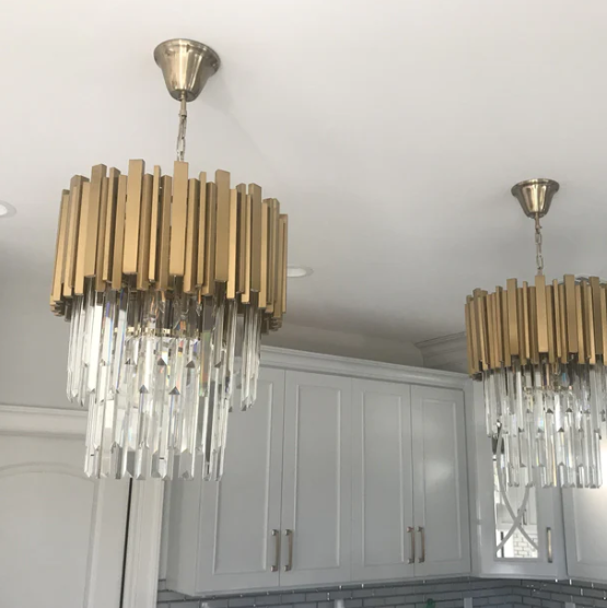 Nordic Brass Finish Tiered Round Crystal Pendant Light for Dining Room/Kitchen Island