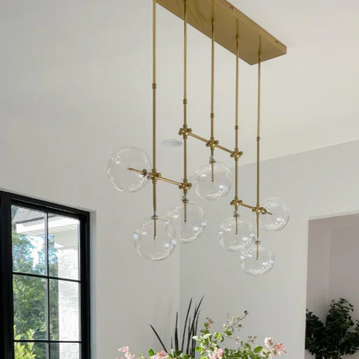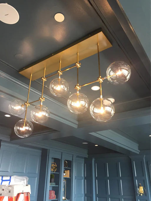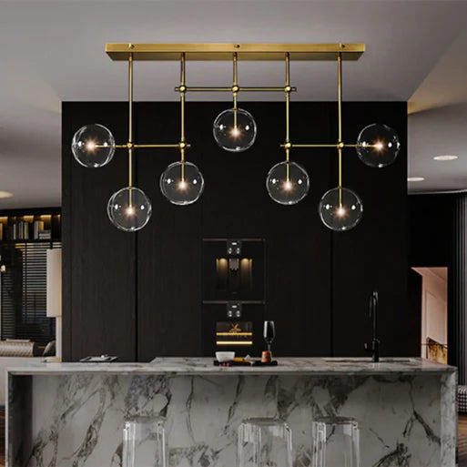 Nordic Clear Sphere Glass Chandelier in Black/Gold Finish for Dinning Room/Kitchen Island