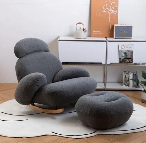 This Nordic Boucle Sherpa Rocker Lounge Chair adds a touch of style and comfort to any living space. With its well-balanced rocker design and soft boucle fabric, it is ideal for relaxing in after a long day. The fitted back and subtle textured fabric ensures it will fit seamlessly in your home, and the choice of three harmonious colors allow it to fit in with any decor. Unwind in complete comfort today.