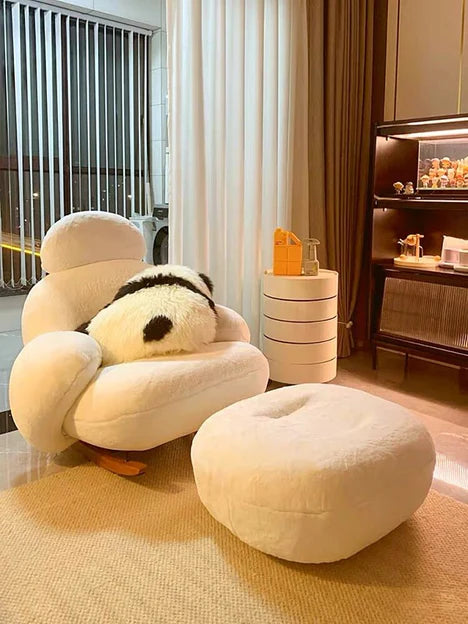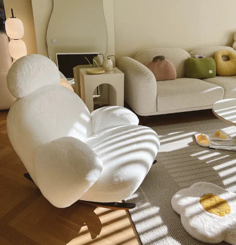 Nordic White/Gray/Pink Boucle Sherpa Rocking Lounge Chair