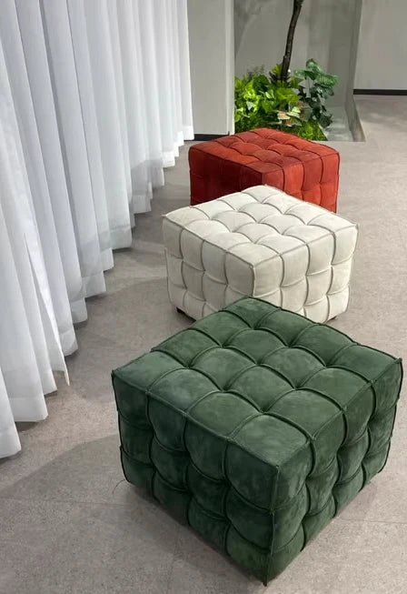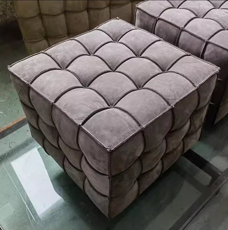 This versatile, stylish low stool is perfect for use in living rooms, cloakrooms, and commercial stores like shoe and clothing stores. Its rich nubuck leather texture and simple colors add a high-end feel.