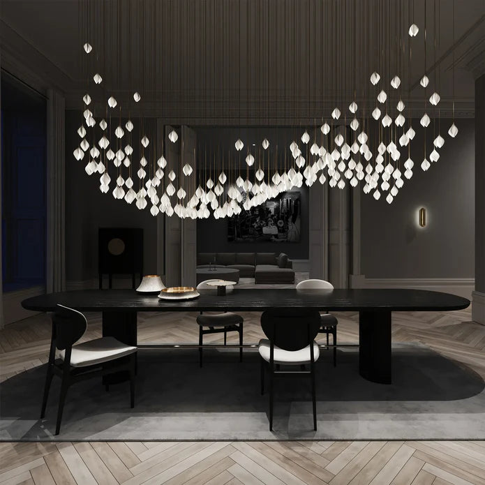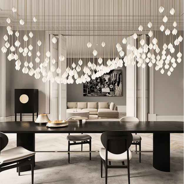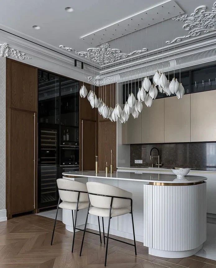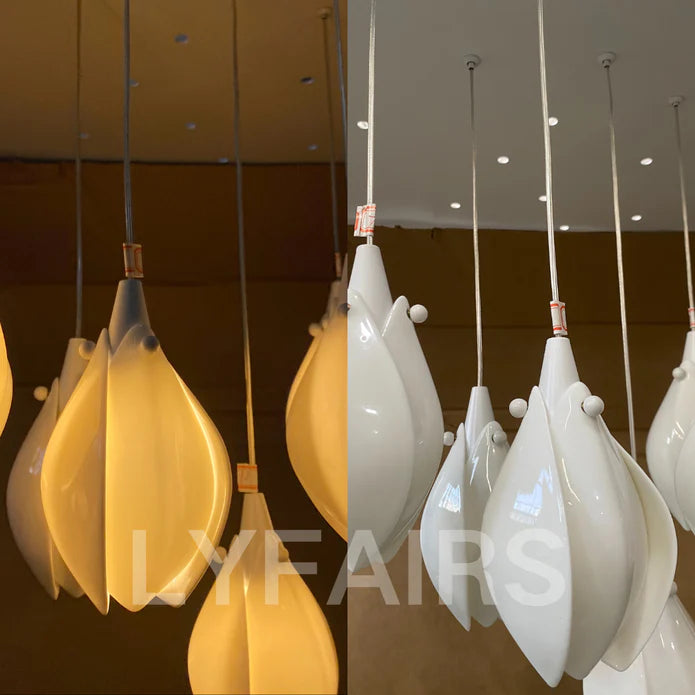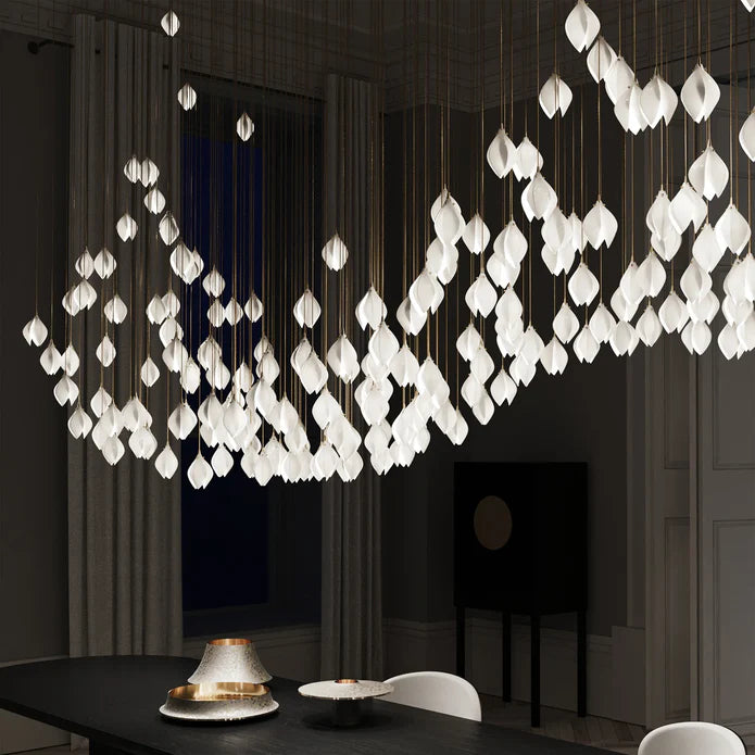Illuminate your home with the beauty of spring with our Nordic Magnolia Flower Ceramics Chandelier. Each bloom is made of porcelain and emits a warm light, adding a touch of elegance to any space. Choose from a variety of configurations to suit your modern or classic interior. Ideal for a kitchen island or dining room.