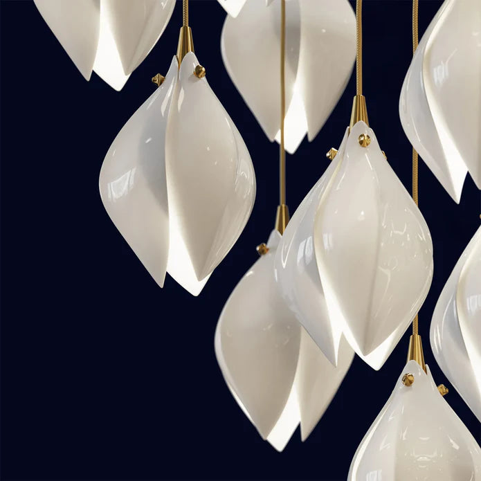 Nordic Magnolia Flower Ceramics Chandelier with Rectangular Canopy