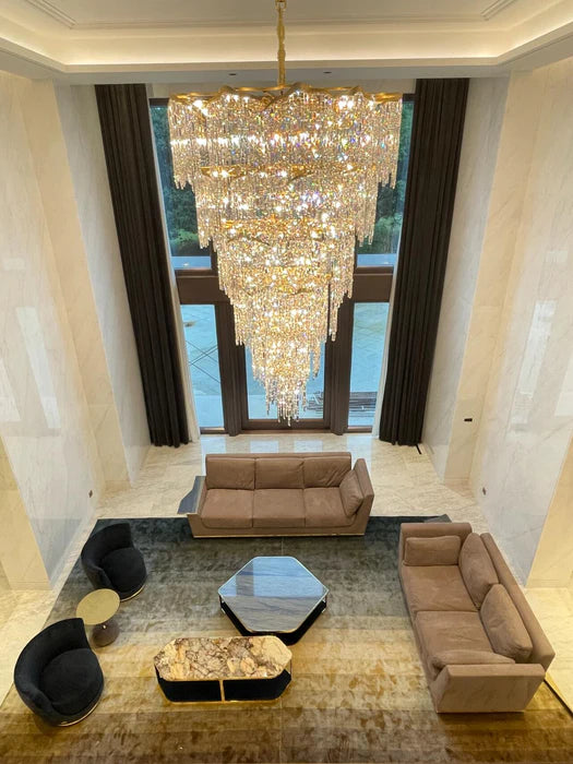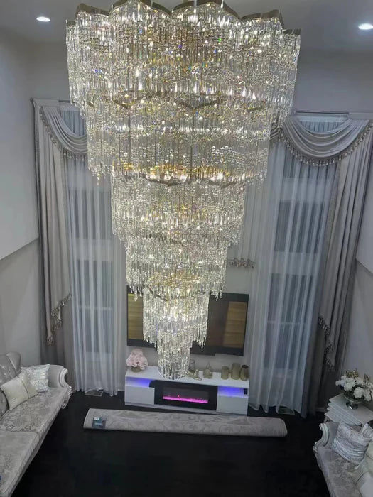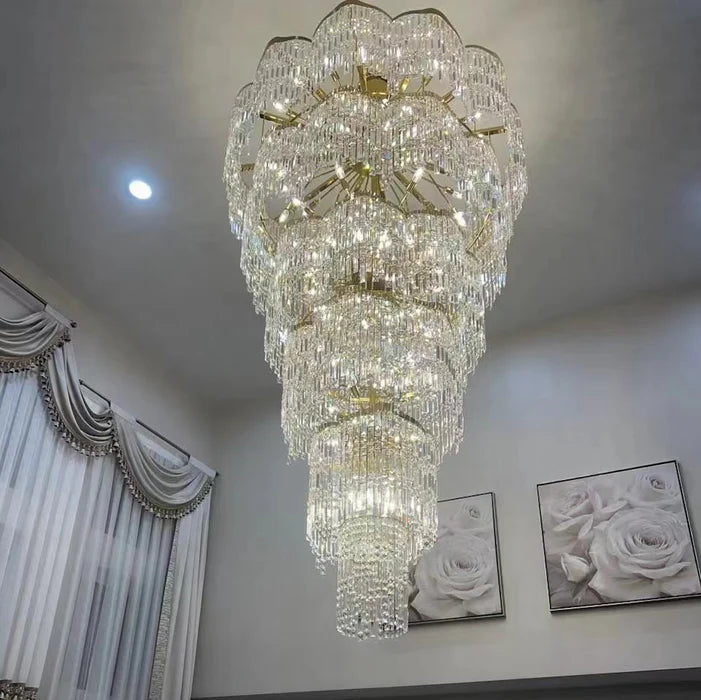 Oversized European Multi-layers Golden Luxury Crystal Chandelier Villa/High-ceiling/Foyer