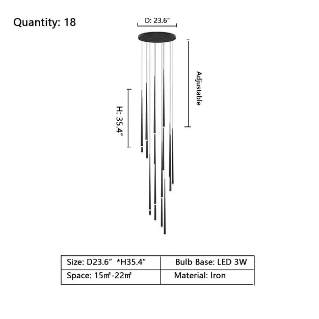 Minimalist Modern Conical Long Chandelier for Dining / Living Room / Ceiling Duplex / Spiral Staircase