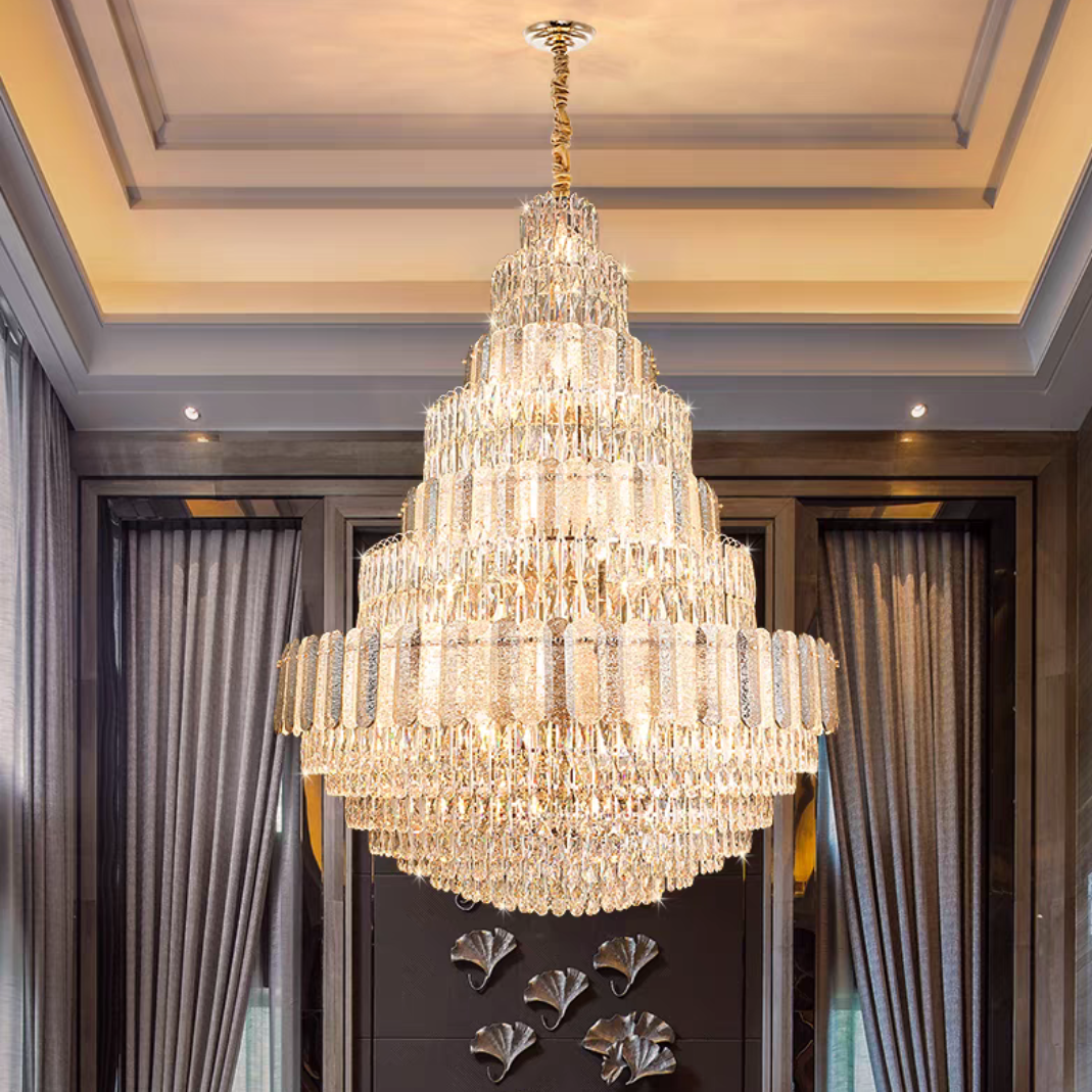 Oversized Modern Multi-layer Empire Crystal Chandelier for Living Room/Foyer/Stairs/Hotel Lobby
