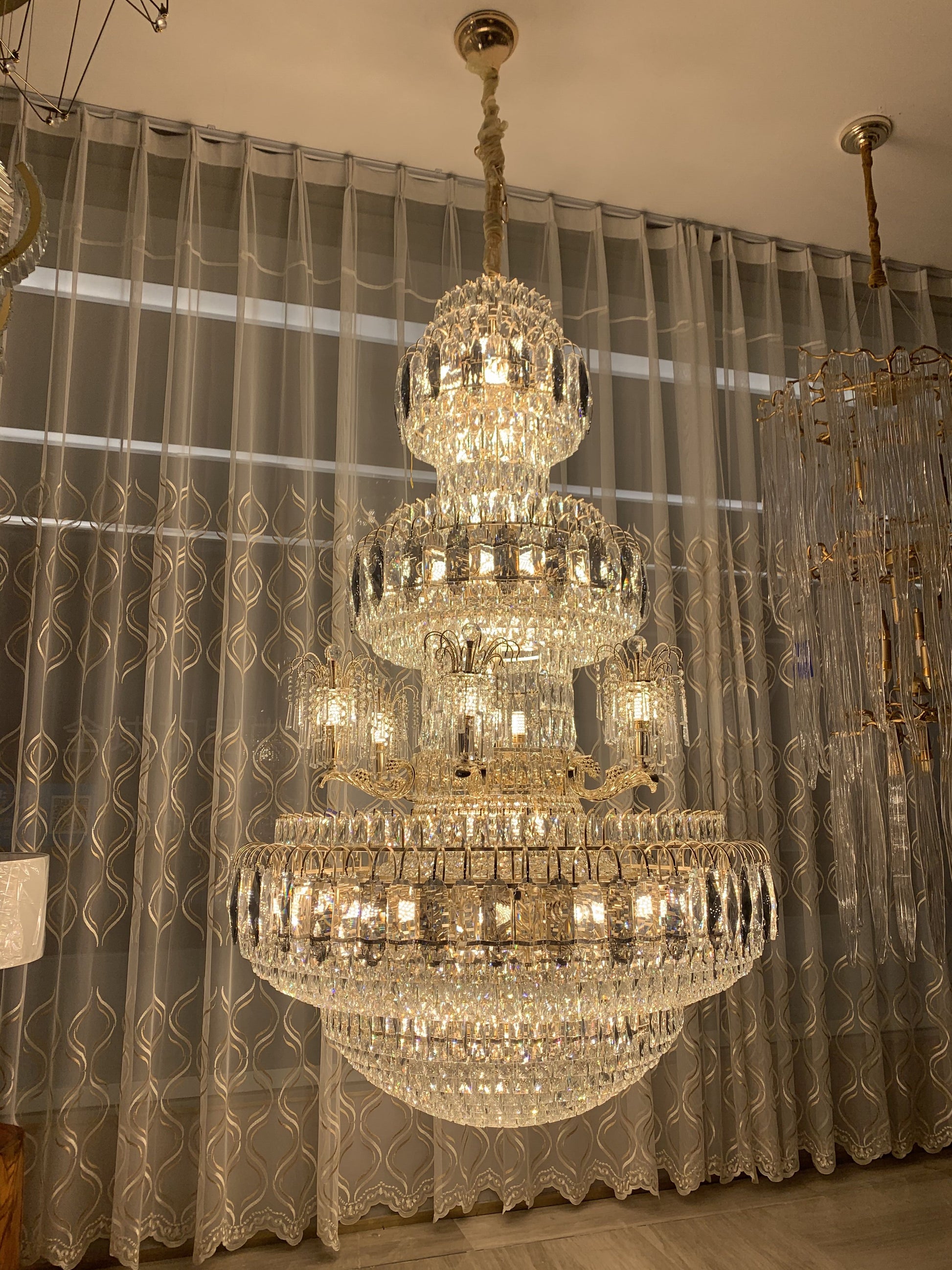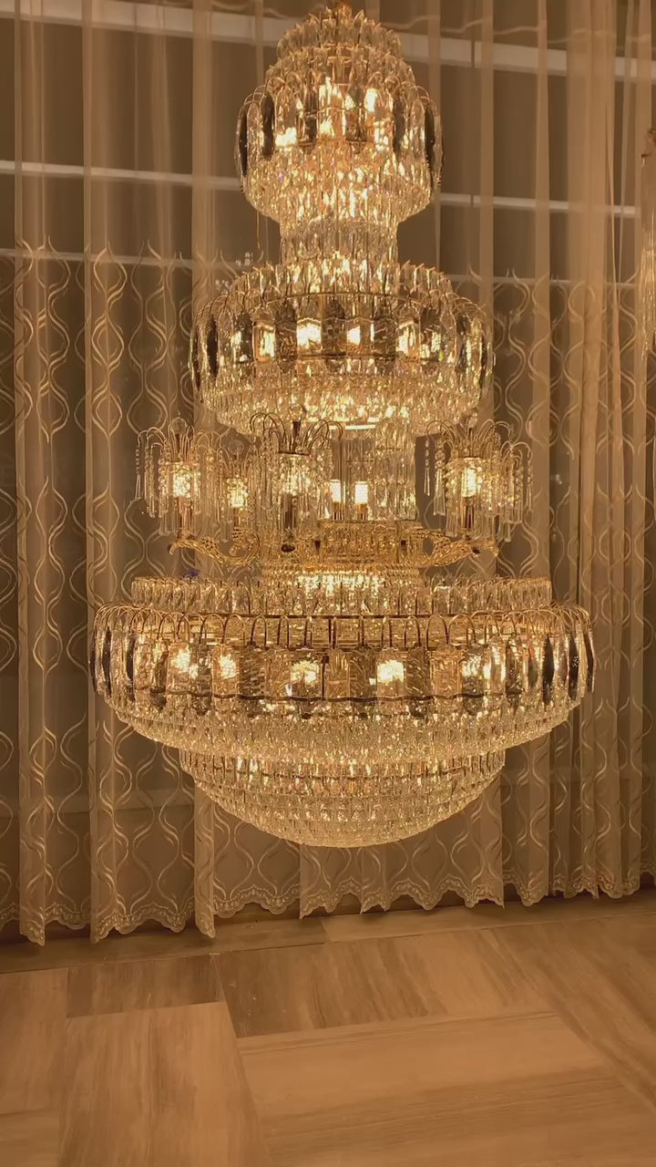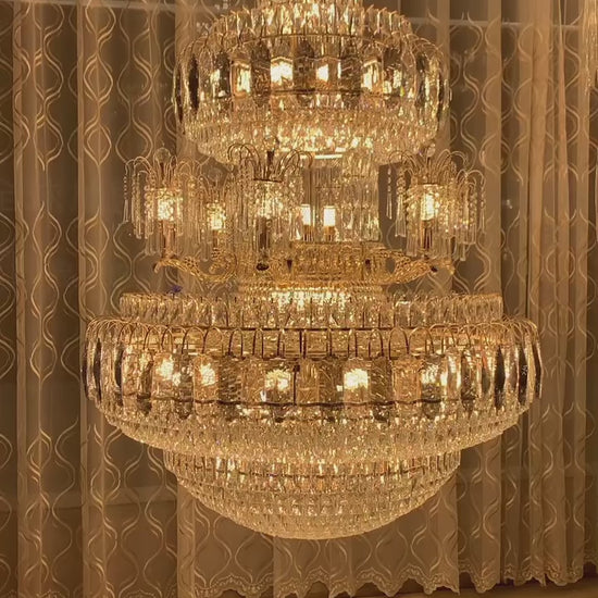 Golden Era Grand Fountain Crystal Chandelier of Luxury and Opulence