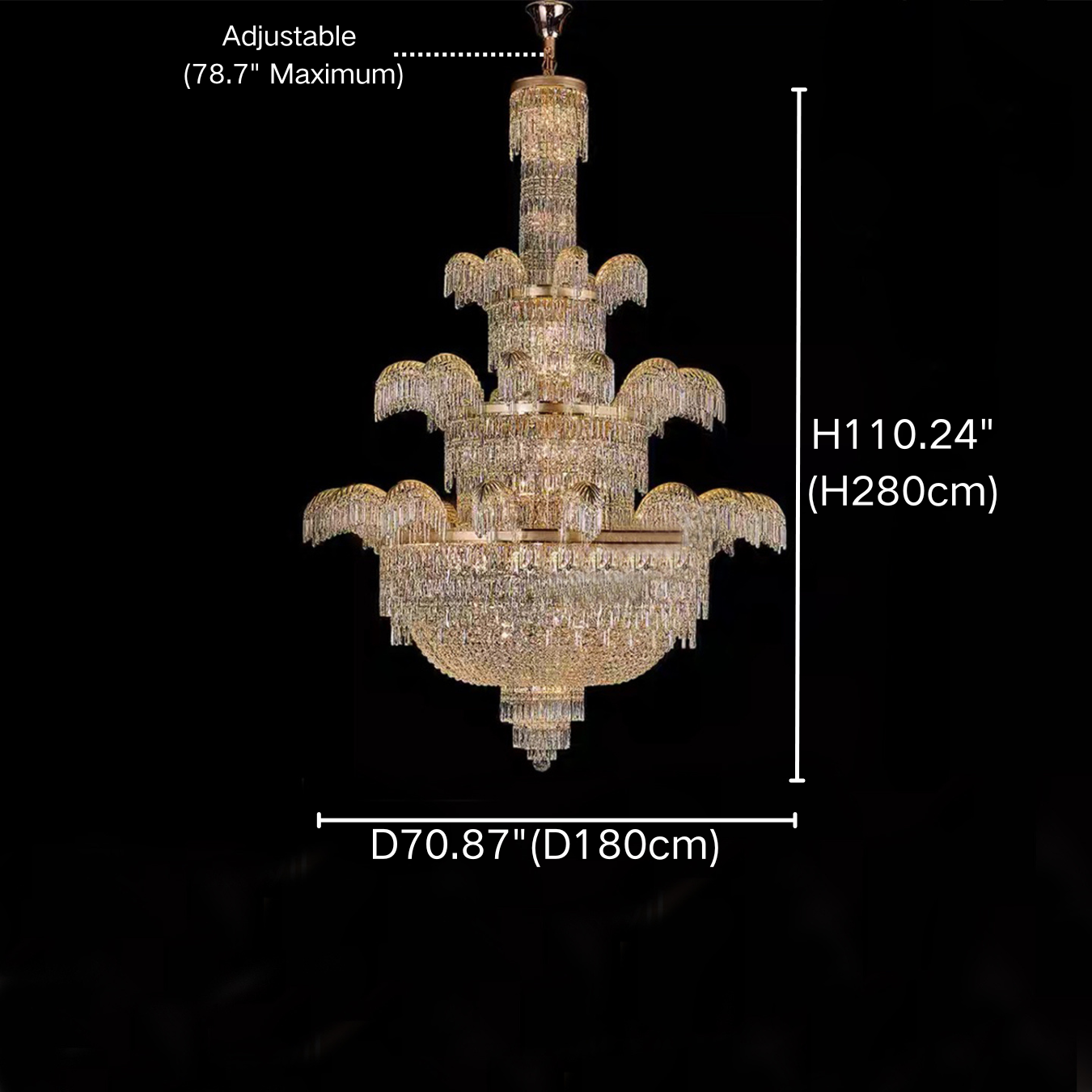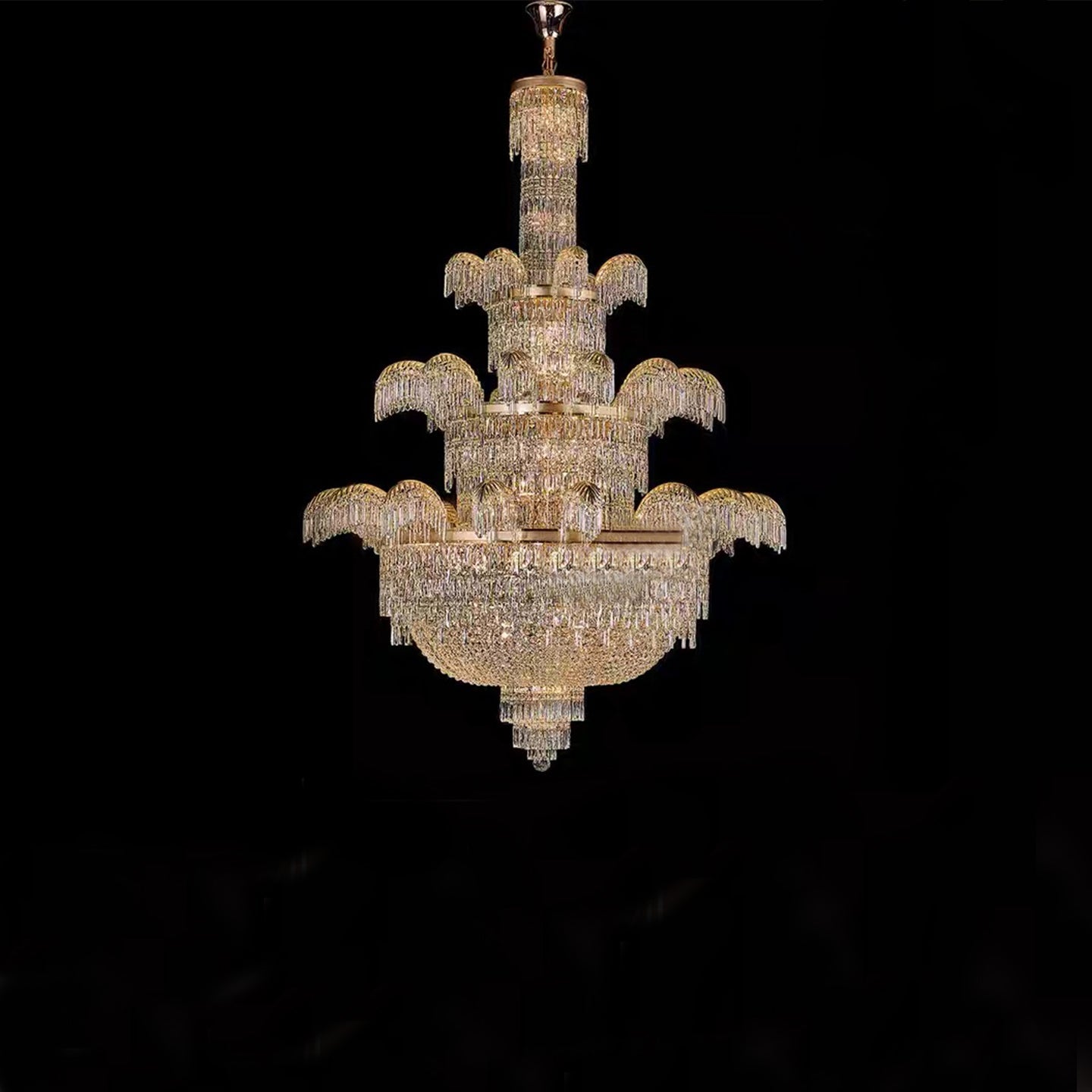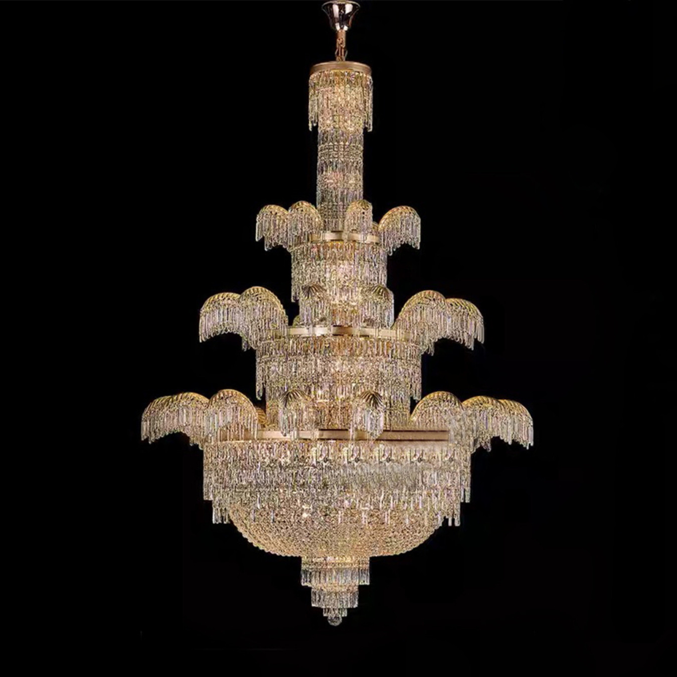 Palatial Golden-Tiered Waterfall-Inspired Crystal Chandelier for High-ceiling