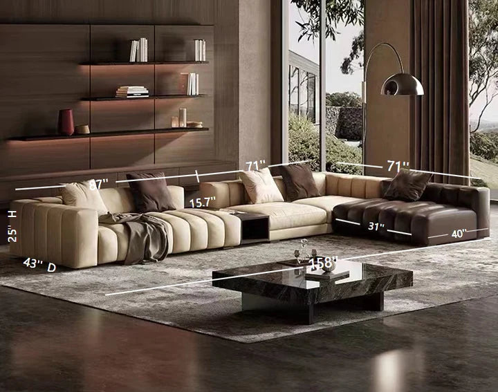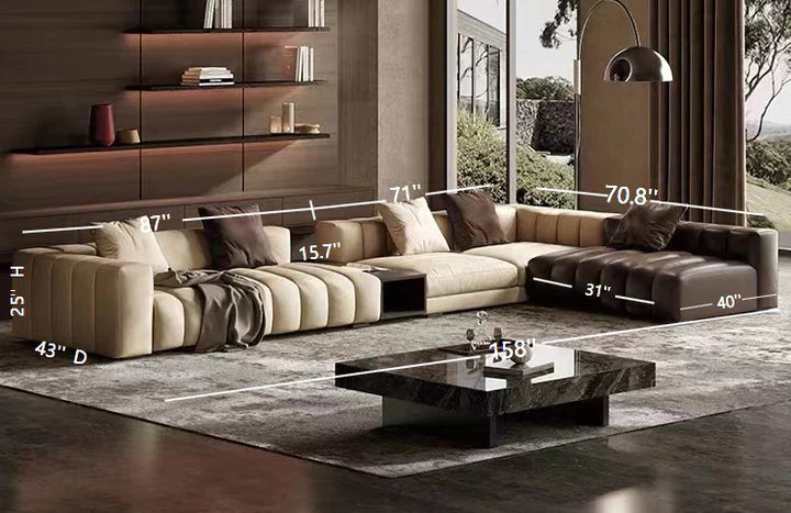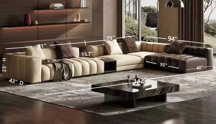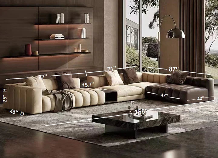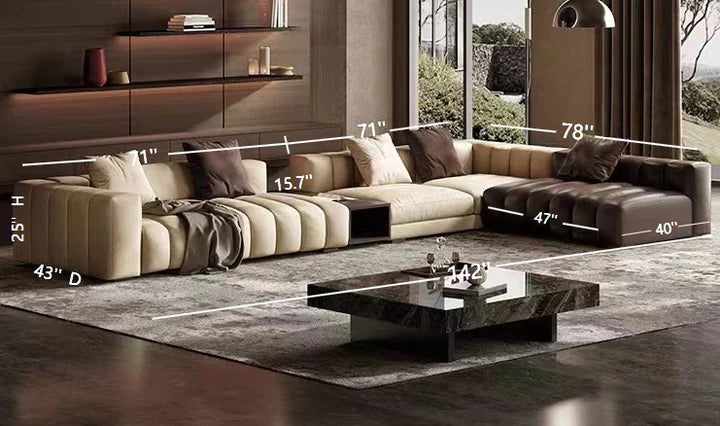 Piano-Shape Rectangle Leather Sofa