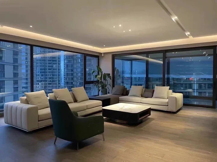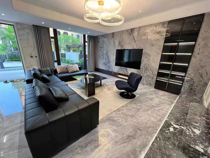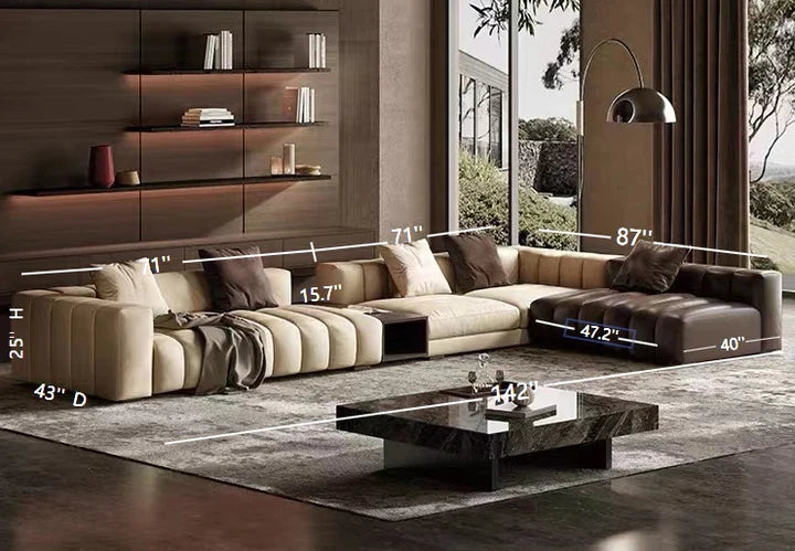 This Piano-style leather sofa offers a combination of luxury and convenience, thanks to its ergonomic shape and carefully crafted composition. These pillows incorporate a well-studied 7:3 ratio of white goose down and pearl cotton to ensure optimal support and maximum comfort. The seating cushions are constructed using SINOMAX East Asian sponge, which has been upgraded from 45D to 50D for higher resilience and longevity.