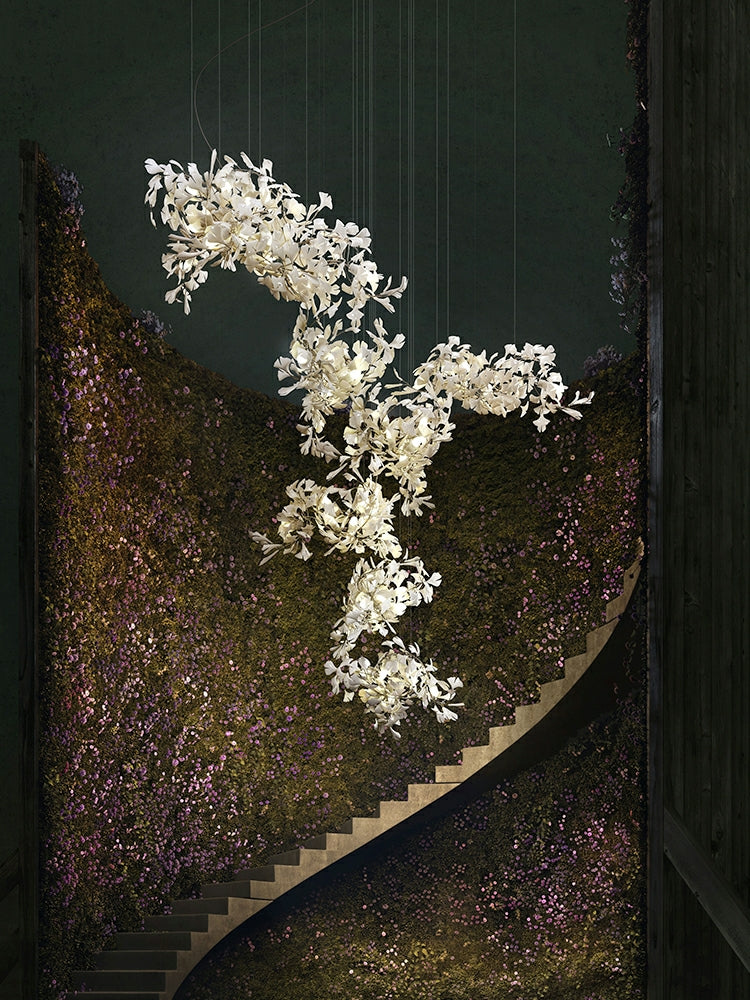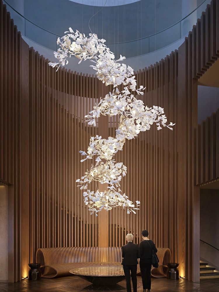 Porcelaneous Leaves Twig Chandelier Tree Branch Shaped Pendant Light For High Ceiling Living Room Hotel Hall