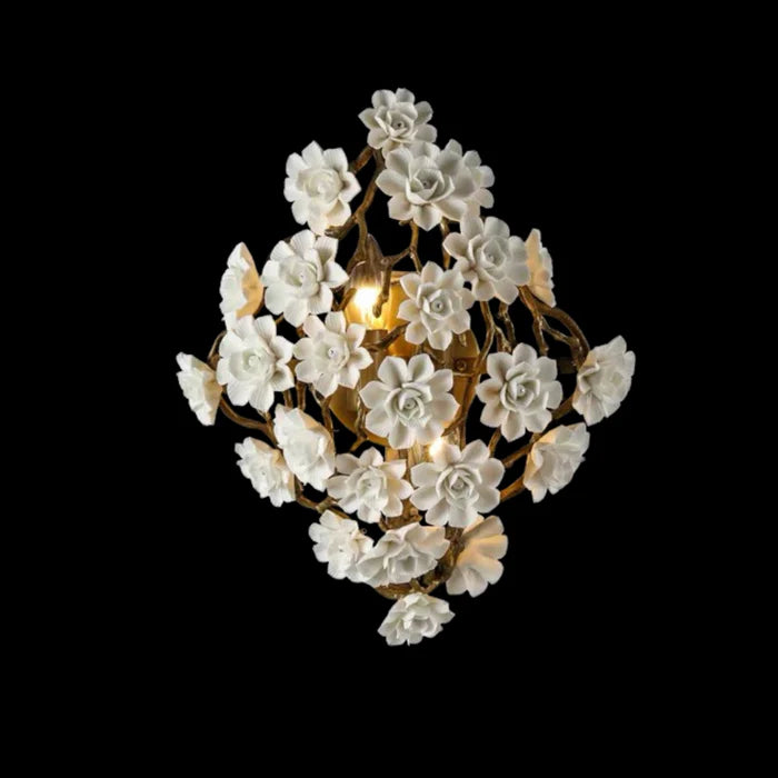 Post-Modern Light Luxury Brass and Ceramics Flower Art Wall Lamp