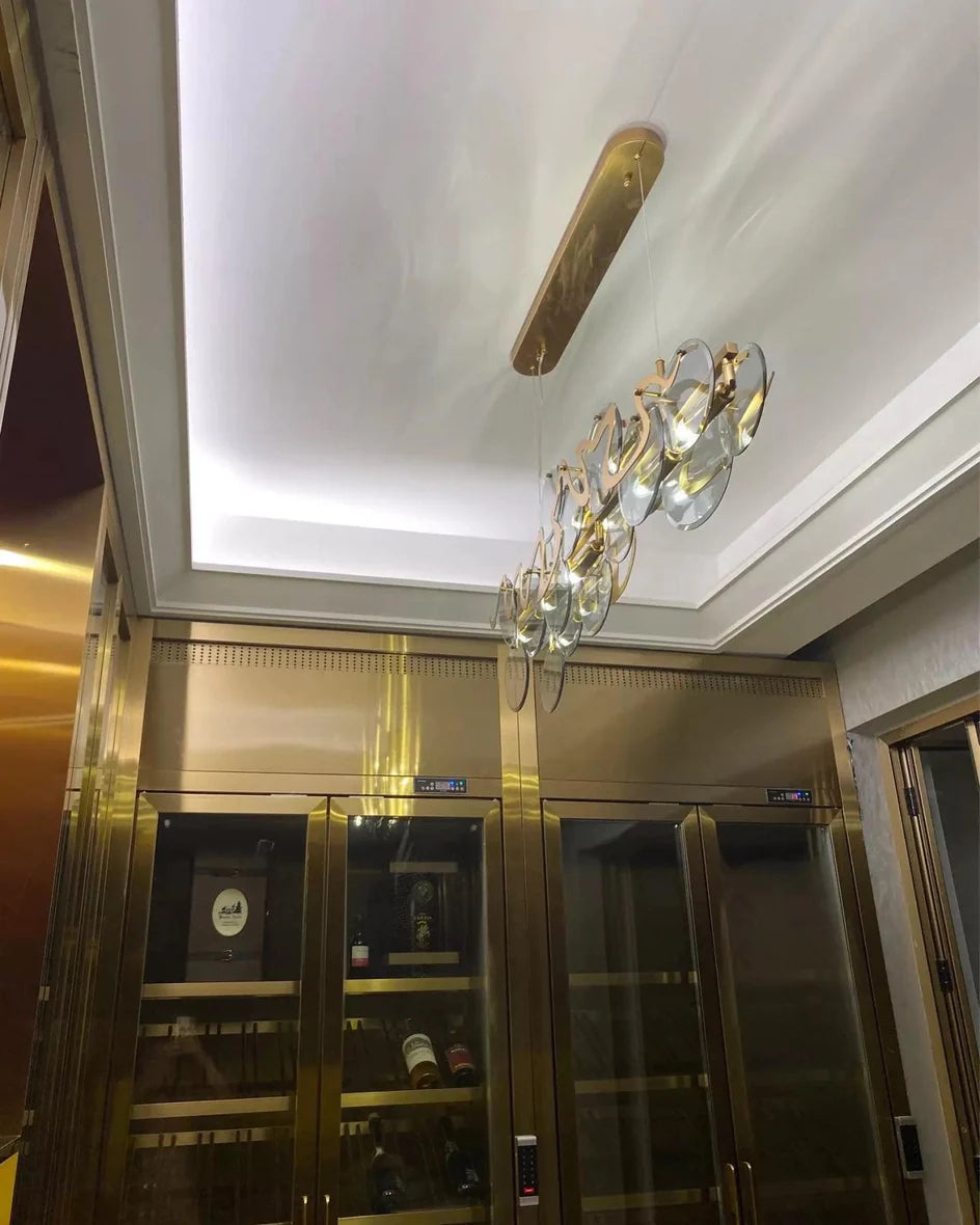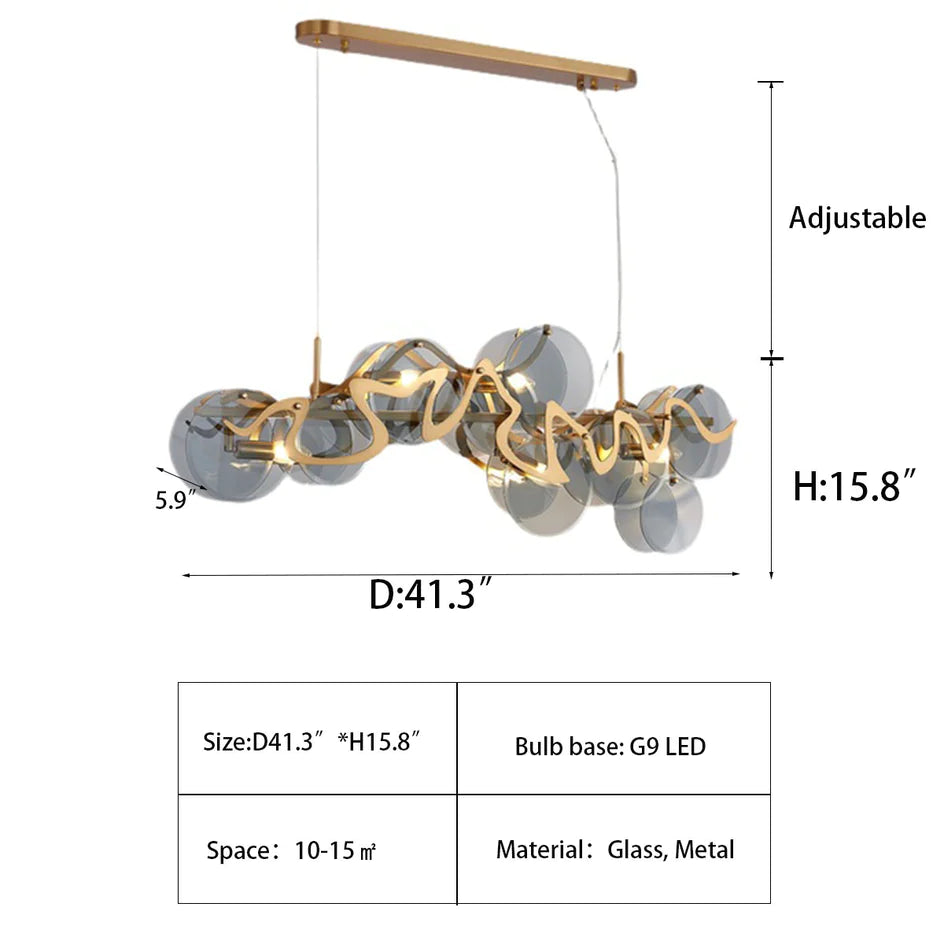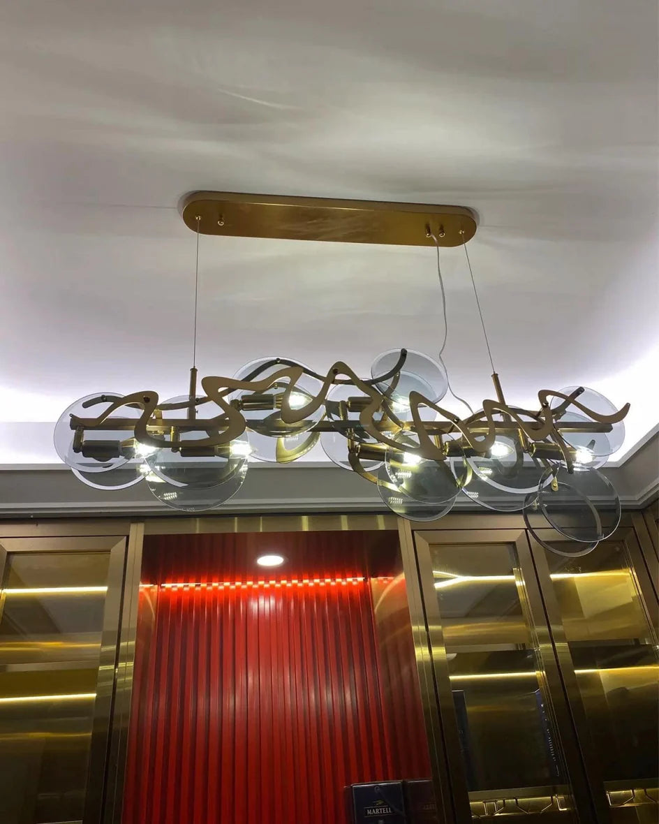This creative chandelier consists of a series of round glass pieces and a wavy metal plated body. The glass pieces are available in two colors: white cloud and Smoke Grey. The overall lighting effect presents a post-modern feeling. Suitable for installation in living rooms, bars, bedrooms, etc.