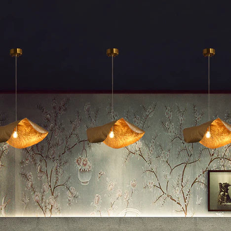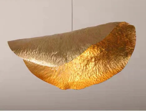 Introducing our Postmodern Withered Leaf Parlor Pendant Lighting Fixture in Brass. Featuring a unique design of withered leaves, this pendant lighting fixture adds a touch of postmodern elegance to any room. Crafted from high-quality brass, it provides long-lasting durability and a warm, inviting glow. Elevate your home with this expertly crafted lighting piece.