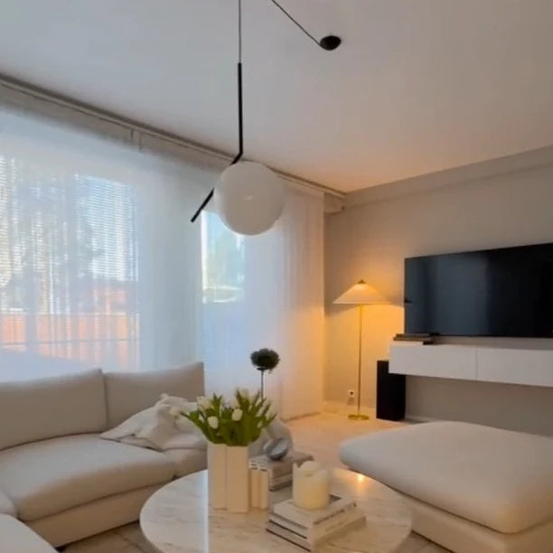 Transform your space with this Simple Single Head Globe White Glass Pendant Lighting. Made with durable iron and a milk-white glass shade, this pendant light adds a touch of elegance to any room. The adjustable rope allows for versatile placement, accentuating its timeless design.