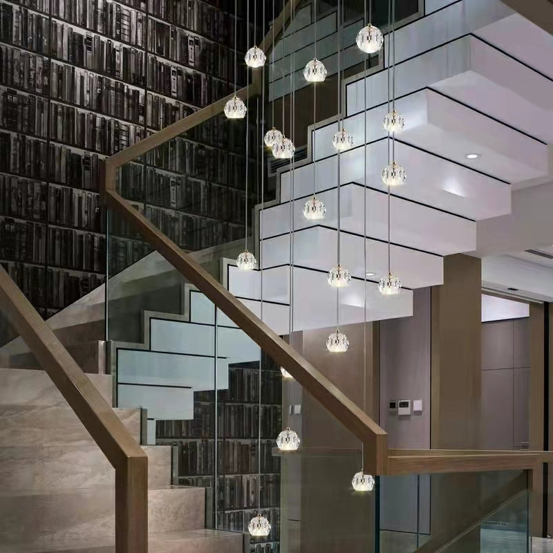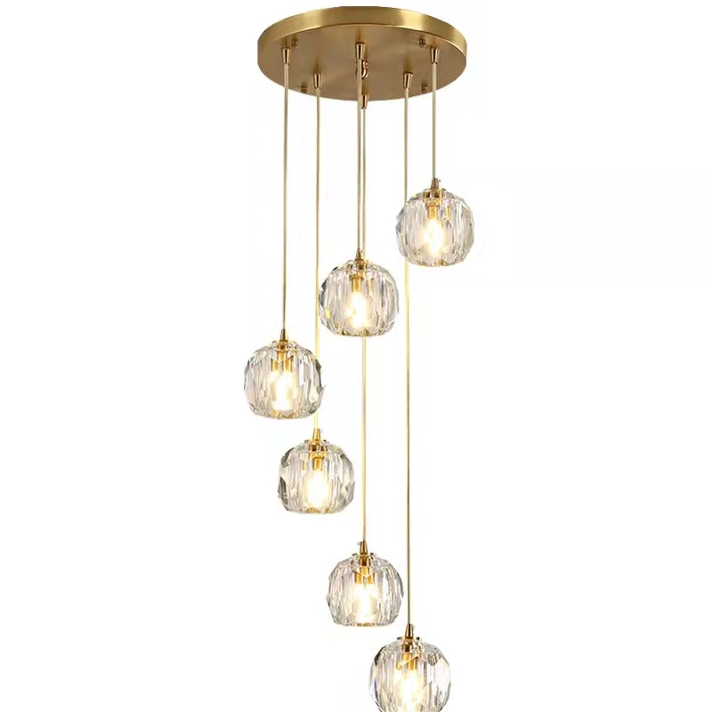 Sputnik K9 Crystal Chandelier Entryway Pure Copper Ceiling Light Foyer Hall Brass Lighting Fixture