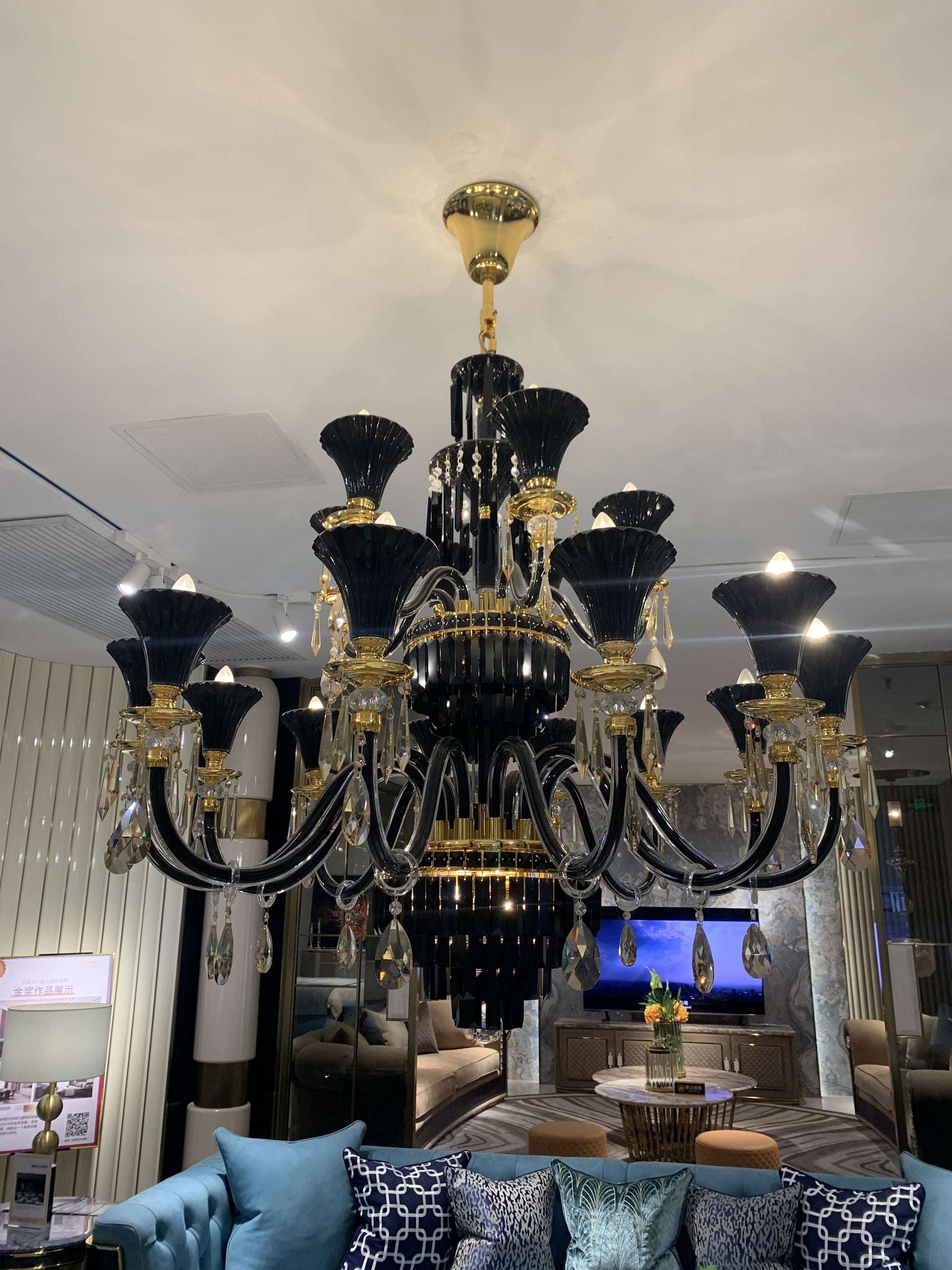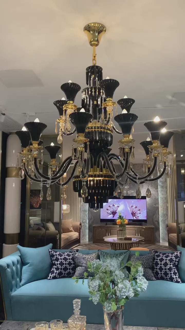 The charm of this crystal chandelier lies in the perfect combination of black and gold, the body of the lamp is predominantly black with a touch of gold at the joints, making this lamp not dull and flashy, the presence of clear K9 crystal pendants also brings a visual freshness to this lamp, this lamp can be decorated in the living room, bedroom or dining room to create a wide and high level of mystery, mesmerising.