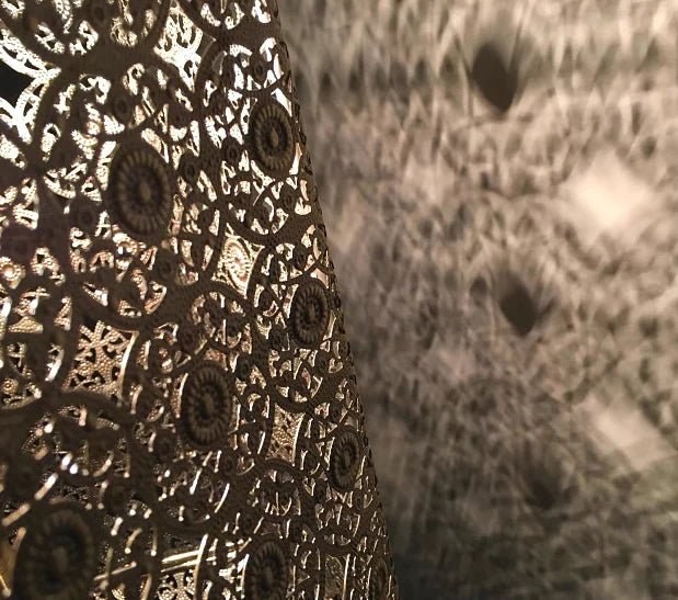 Illuminate any space with this exquisite Moroccan chandelier. Handmade with intricate hollow carved flowers, it adds a touch of vintage charm to any bedroom, dining room, cafe, hotel, or bar. Bring timeless elegance and character to your space with this unique and one-of-a-kind piece.