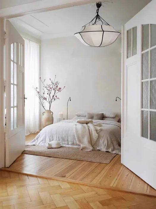 Add a touch of vintage elegance to your home with our French-style Cream White Umbrella Chandelier. Perfect for bedrooms and small living areas, this small chandelier will bring a natural and charming feel to any space. Create a cozy and inviting ambiance with this unique piece.